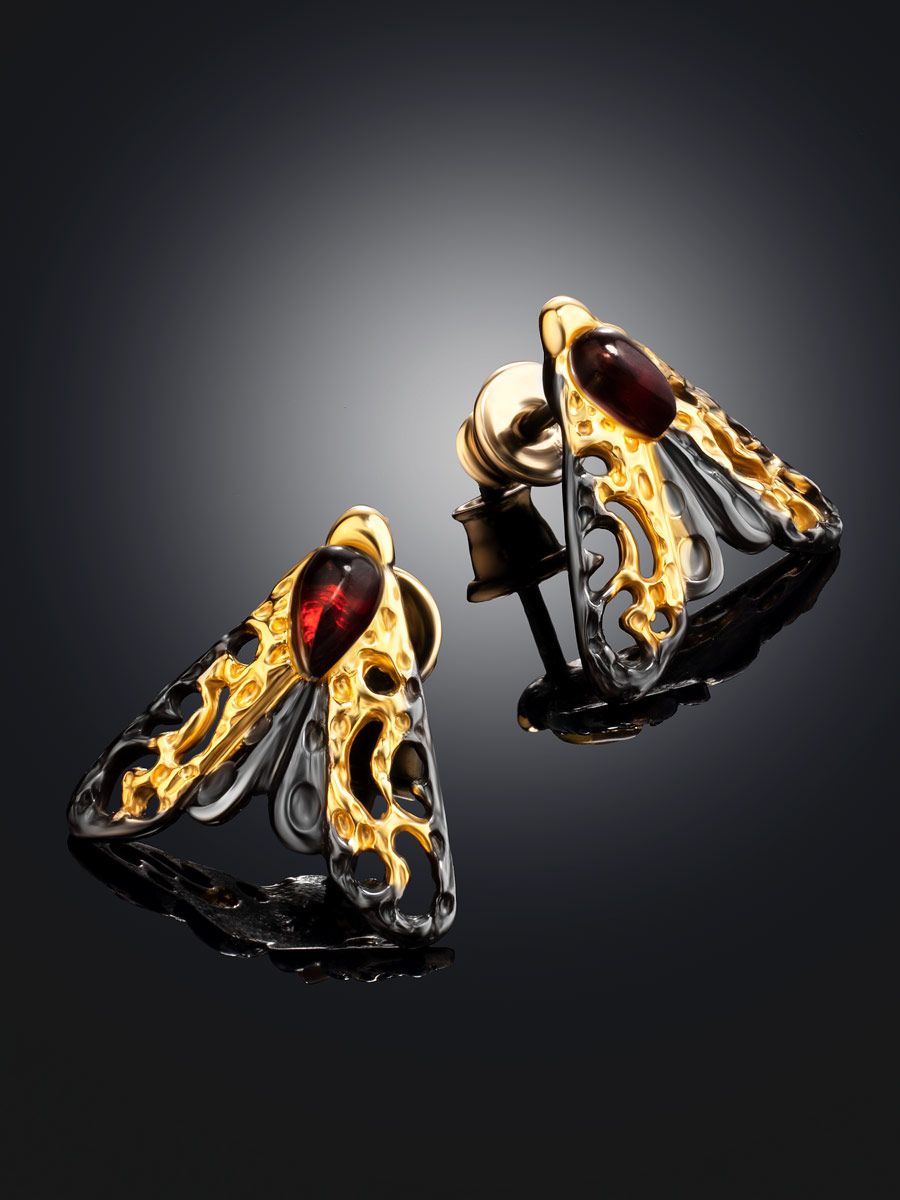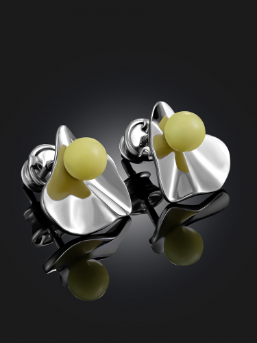 Яркие и оригинальные серьги-гвоздики «Цокотуха» с коньячным янтарём