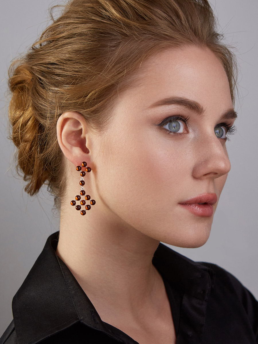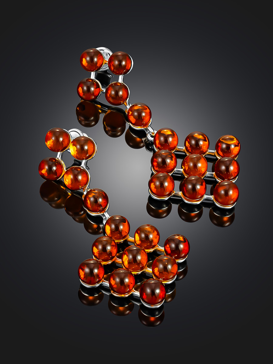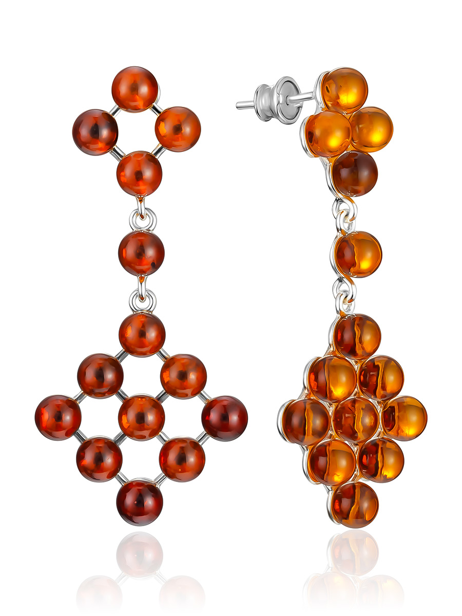 Яркие крупные серьги «Мозаика» с коньячным янтарём