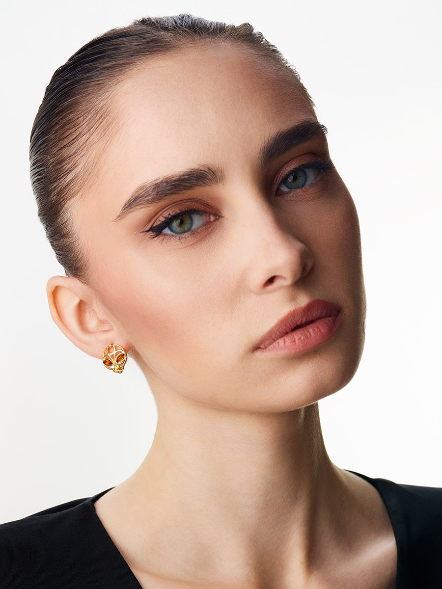 Яркие необычные серьги из коньячного янтаря «Кошка»