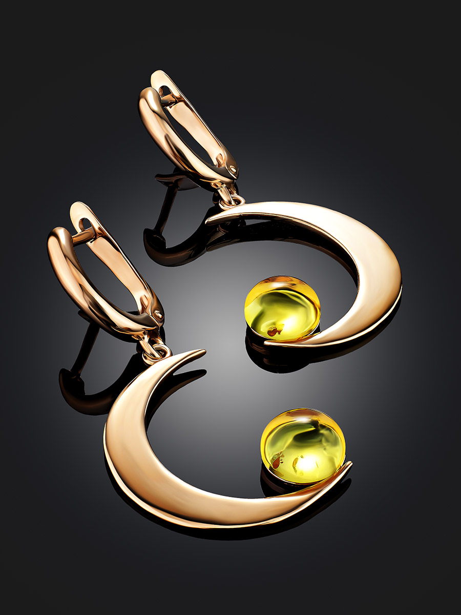 Яркие позолоченные серьги из нежно-лимонного янтаря «Персия»