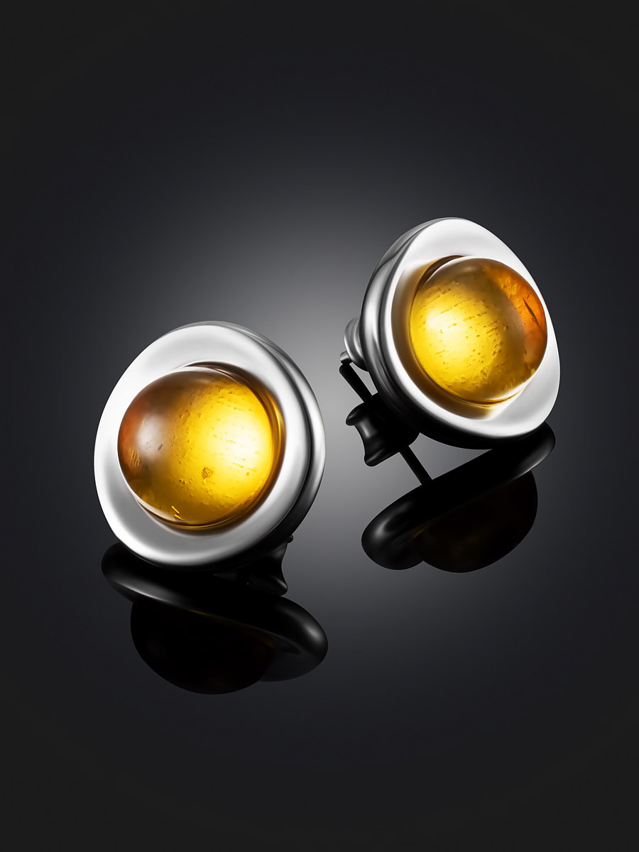 Яркие пусеты Palazzo с янтарём лимонного цвета