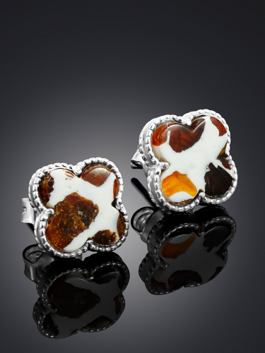 Яркие серьги-гвоздики «Монако. Далматин» с натуральным янтарём