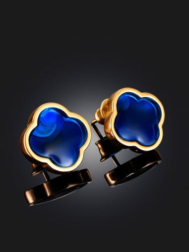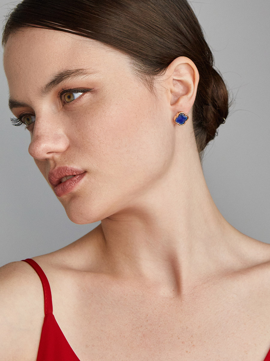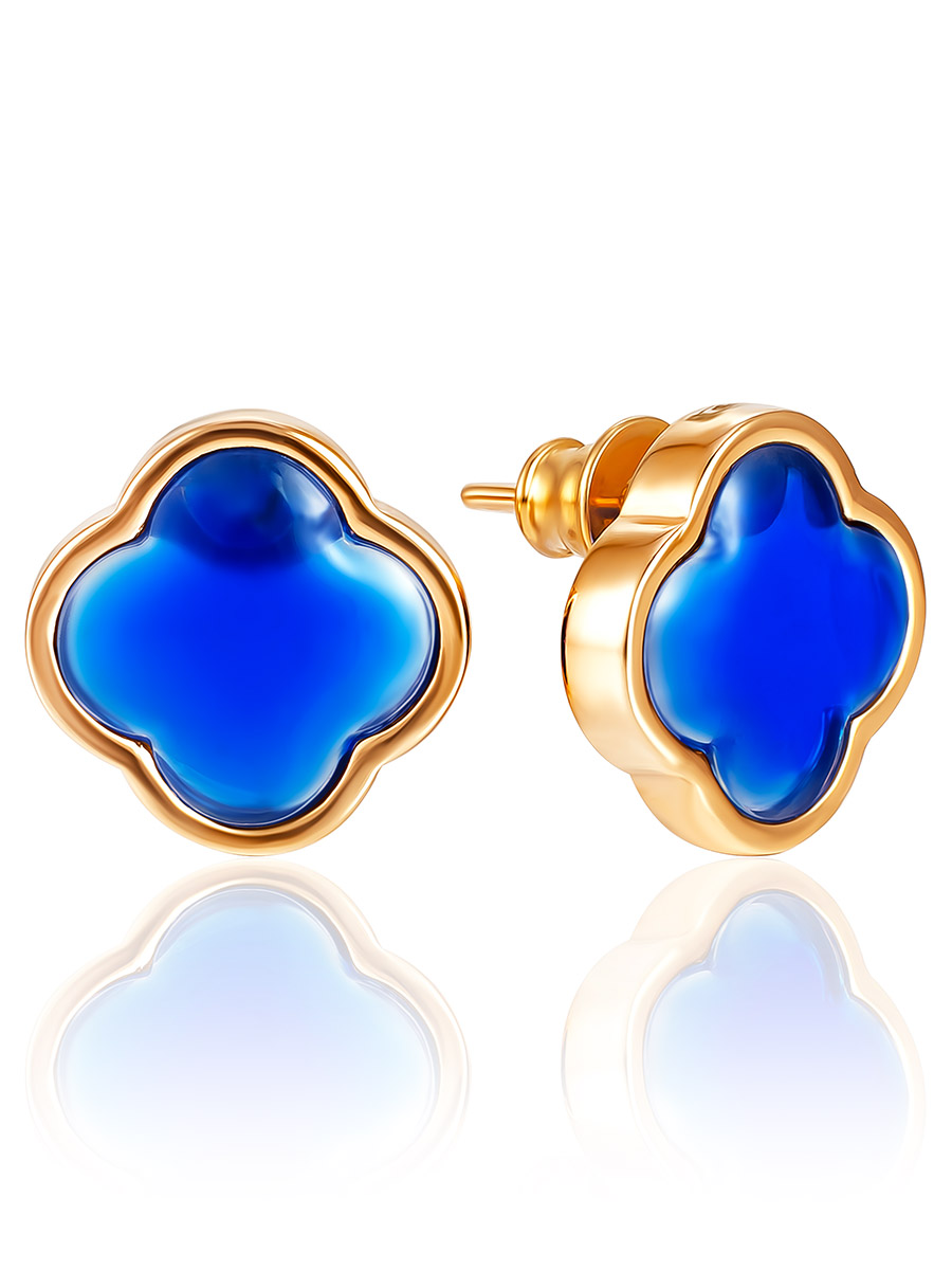 Яркие серьги-гвоздики в легендарном дизайне «Монако» с синим янтарём