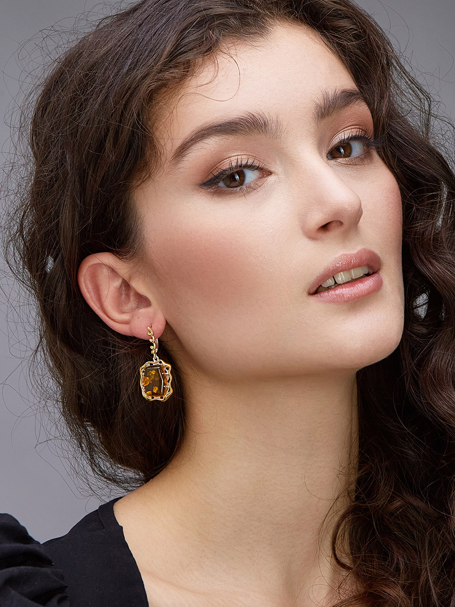 Яркие серьги «Иллюзия» из натурального янтаря