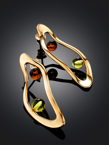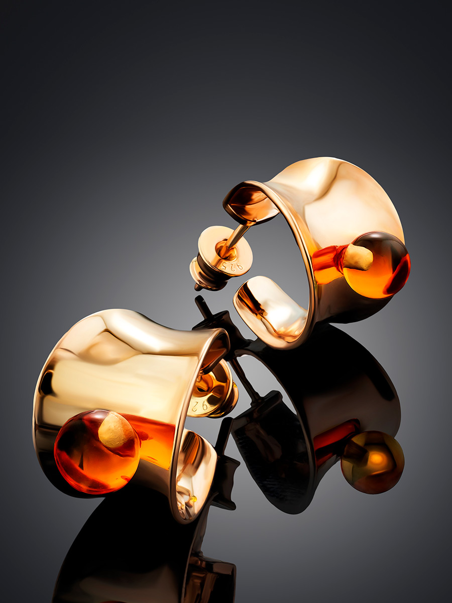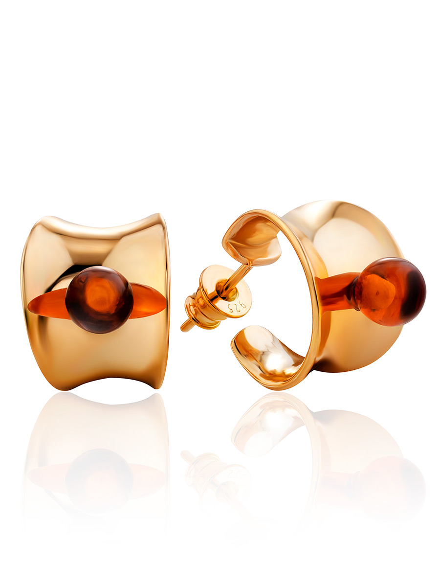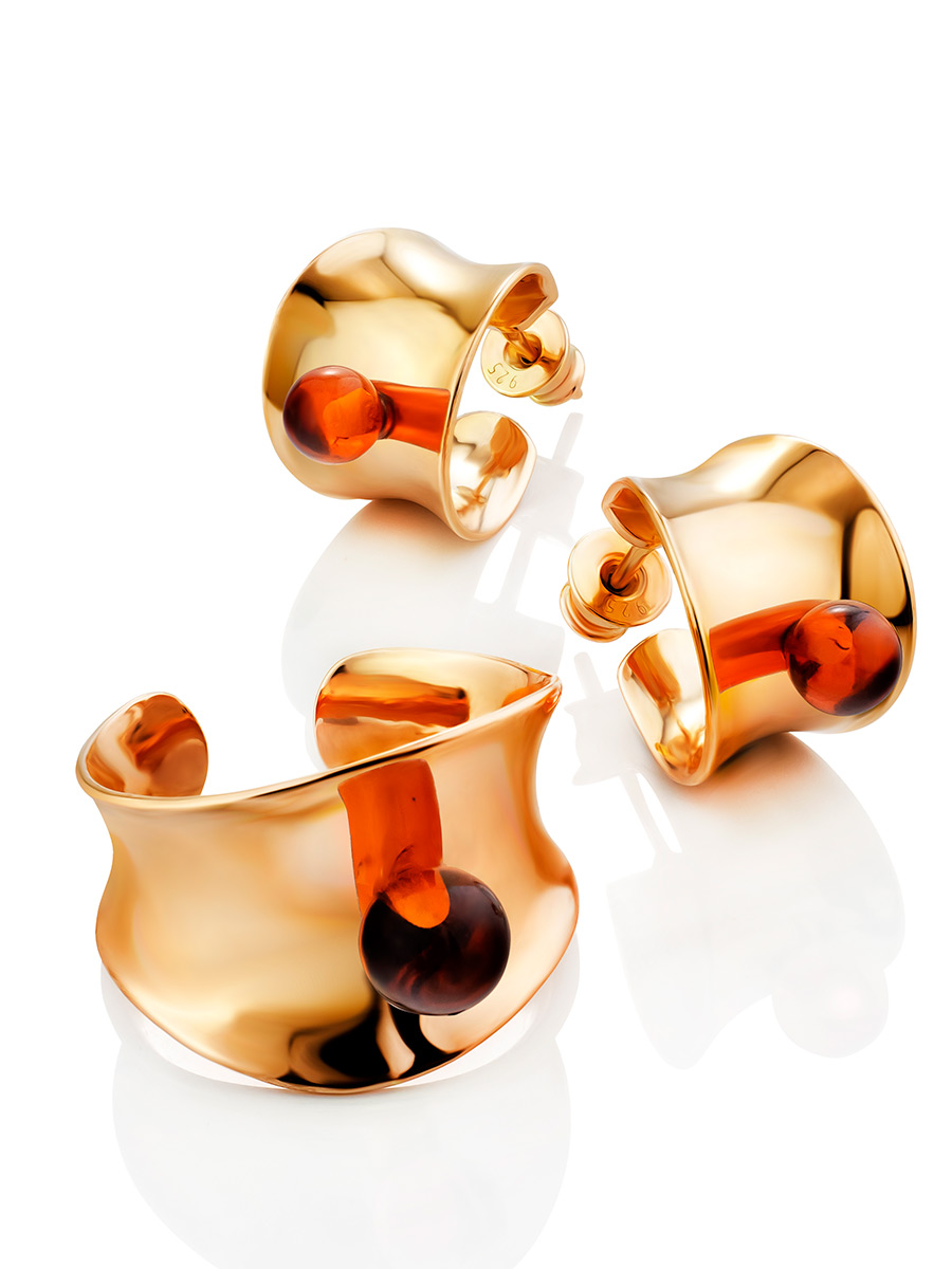 Яркие серьги-кольца с коньячным янтарём Palazzo от ifamore™