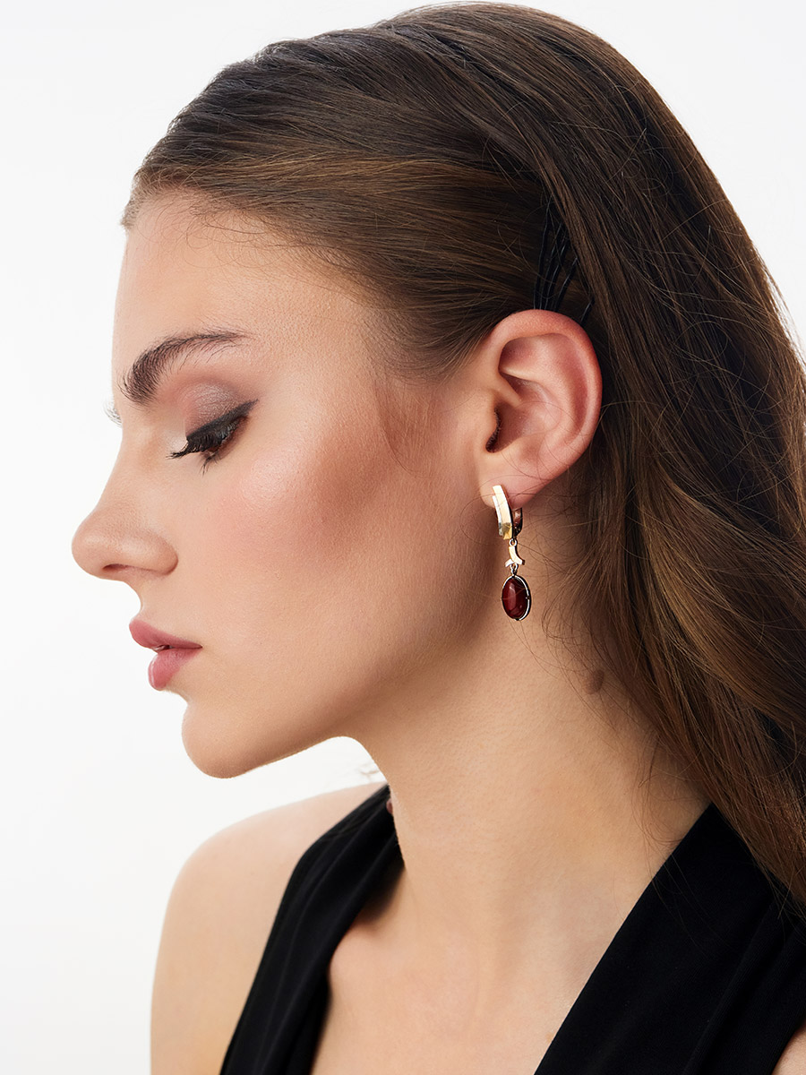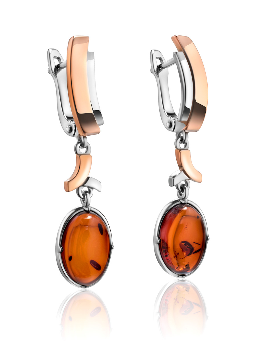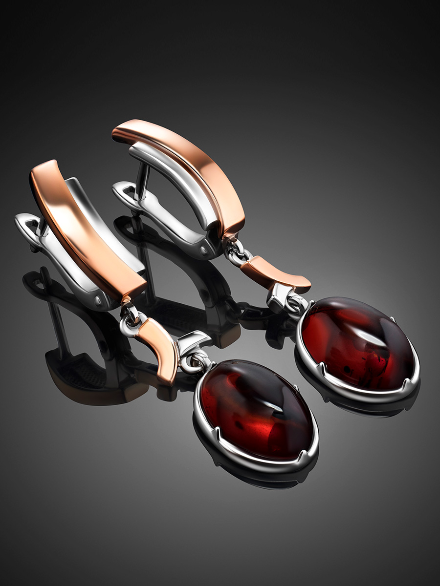 Яркие серьги «Люмьер» из янтаря вишнёвого цвета