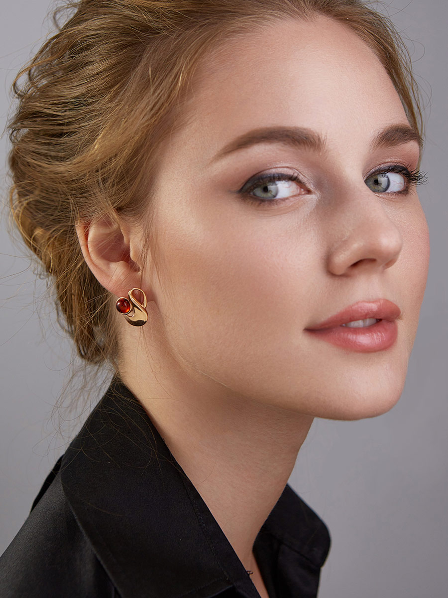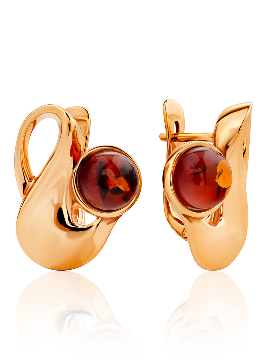 Яркие серьги «Маверикс» с натуральным коньячным янтарём