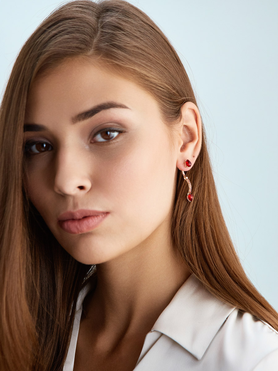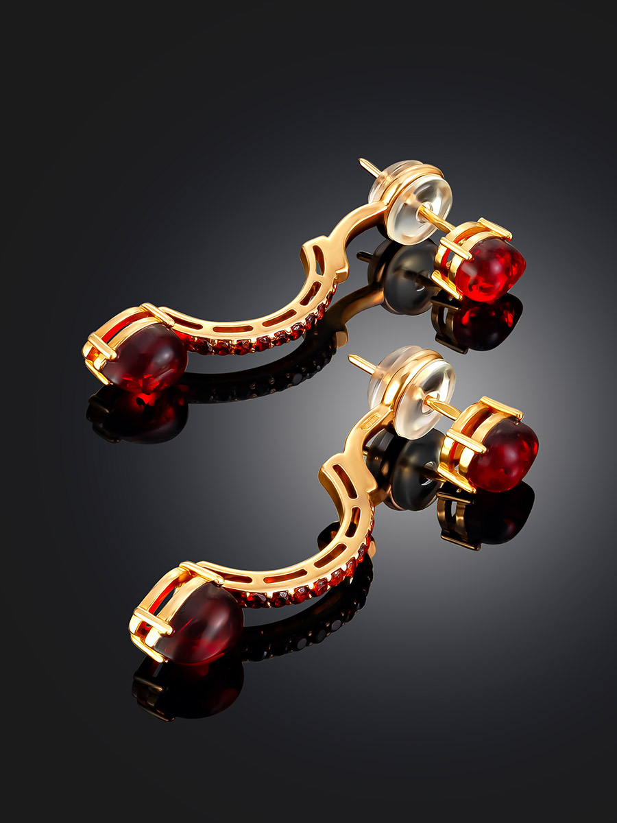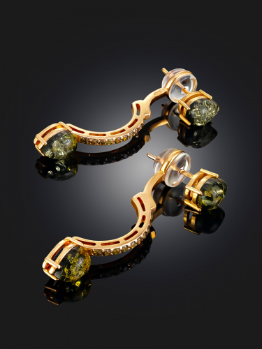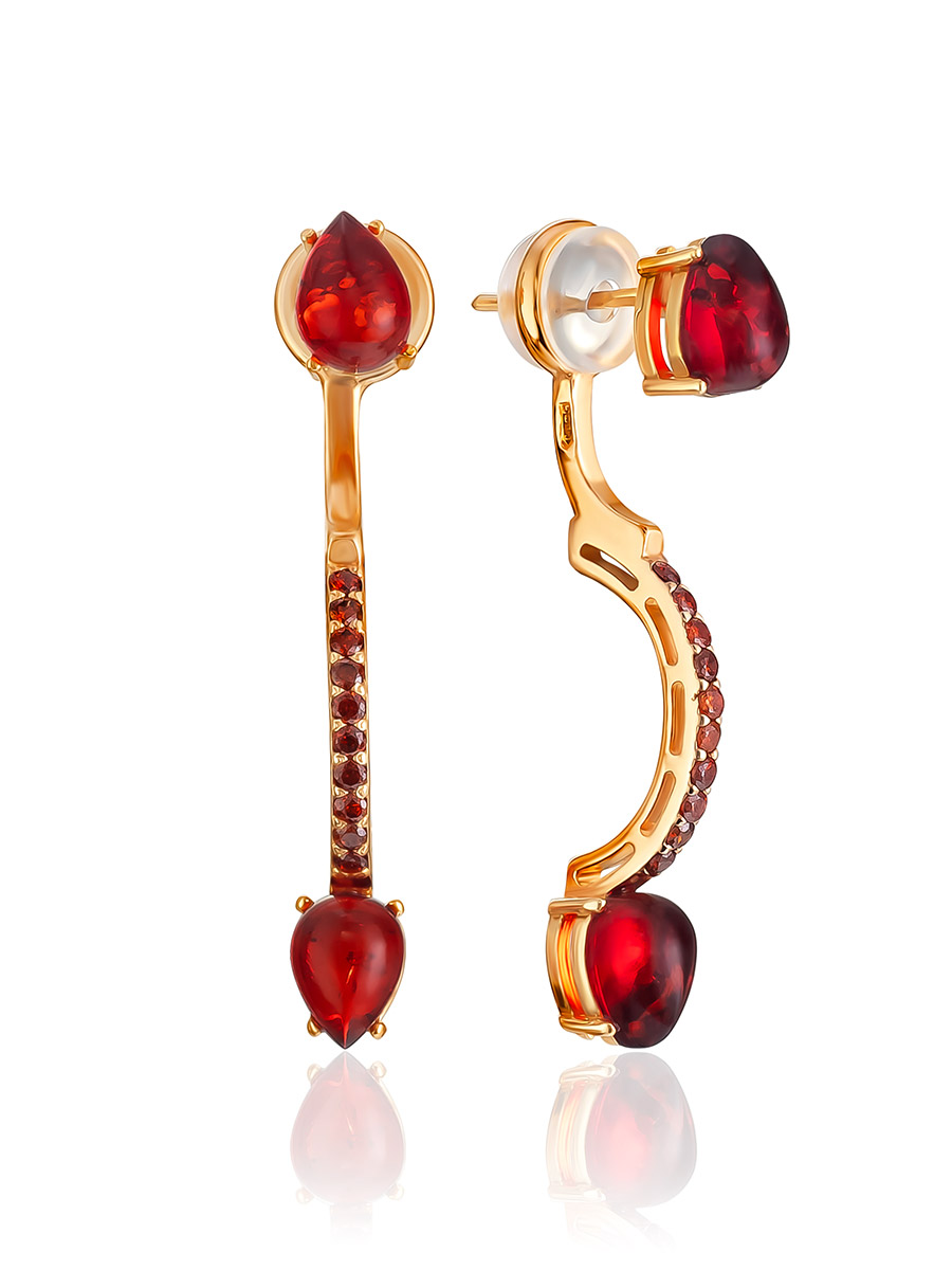 Яркие серьги «Ренессанс» с алым янтарём и фианитами