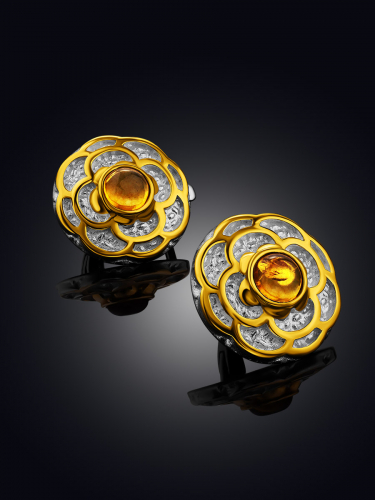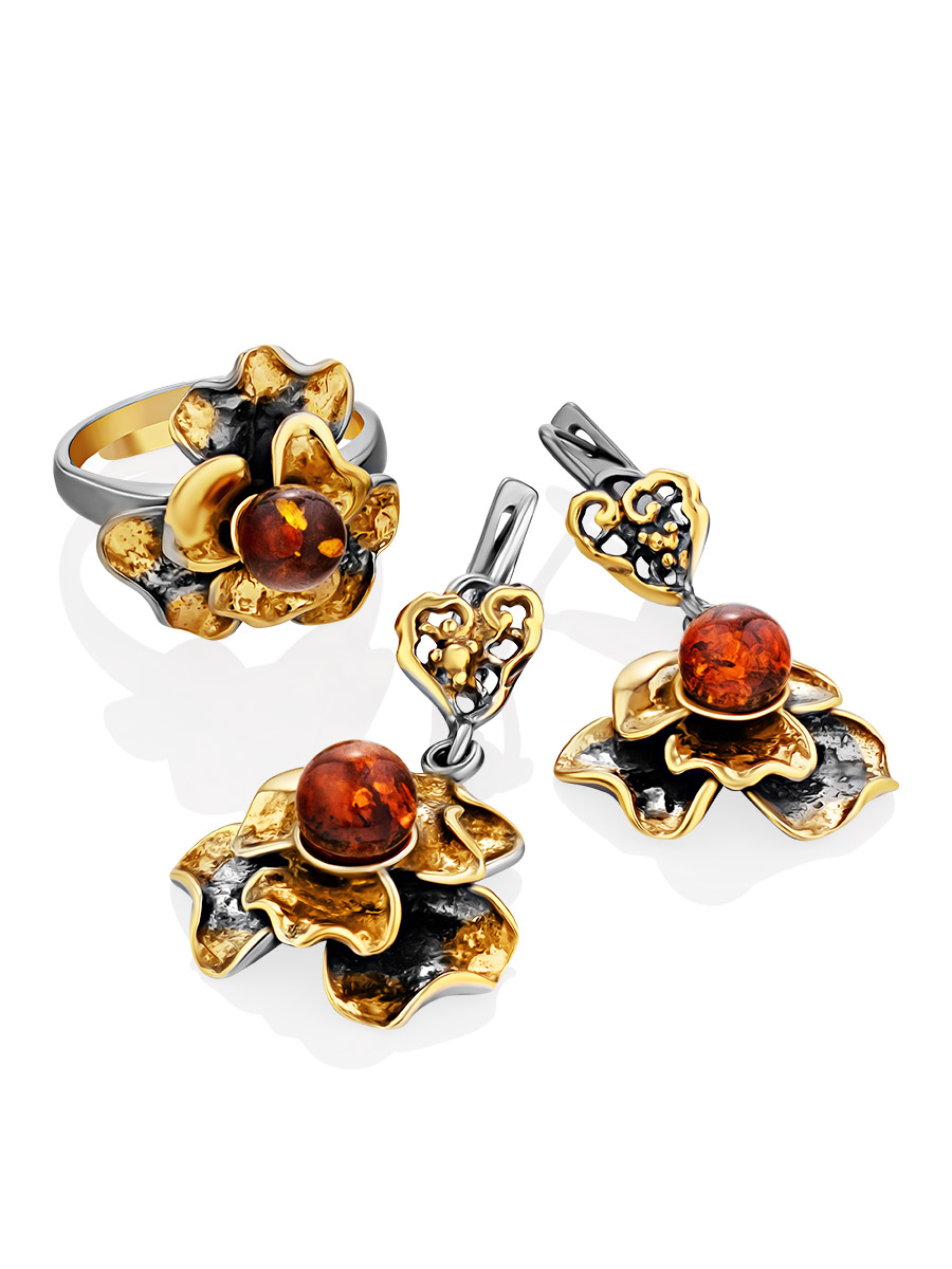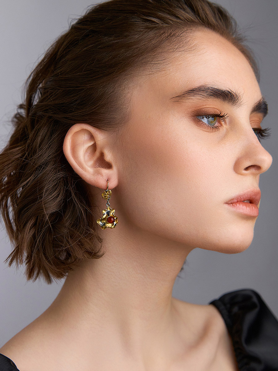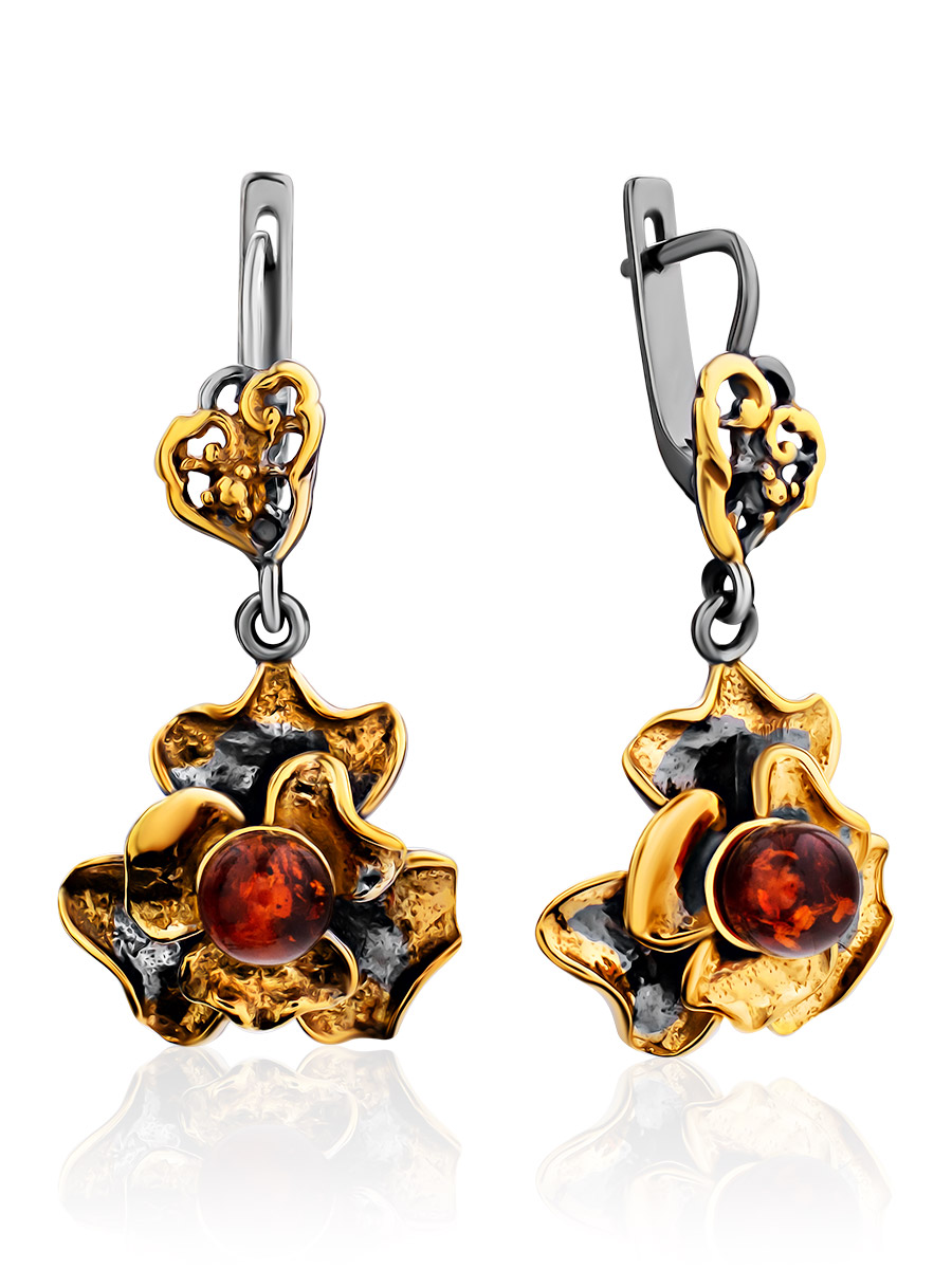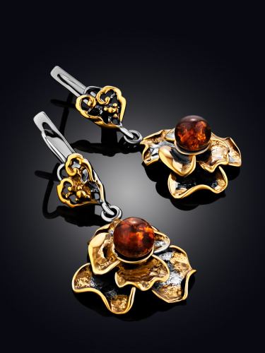 Яркие серьги в цветочном дизайне «Бальзамин» с янтарём