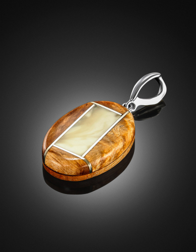 Яркий кулон «Индонезия» из натурального янтаря и дерева