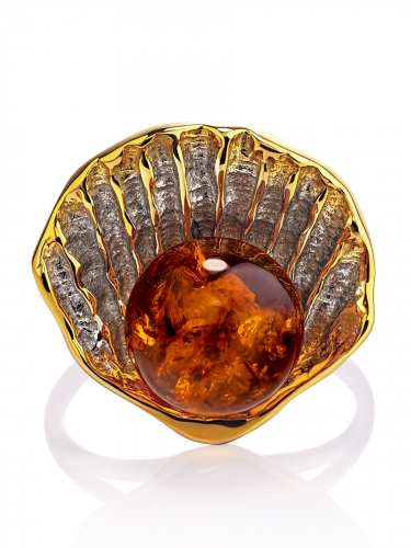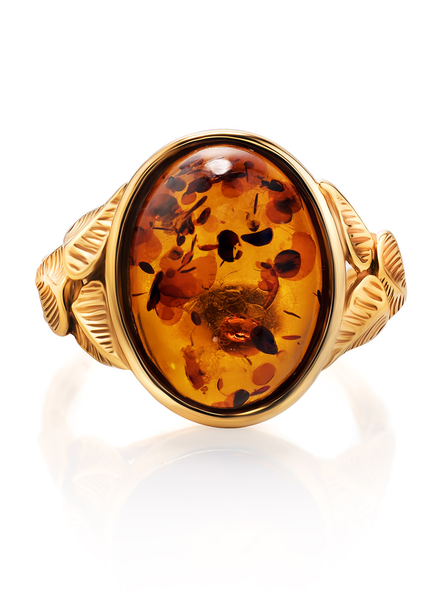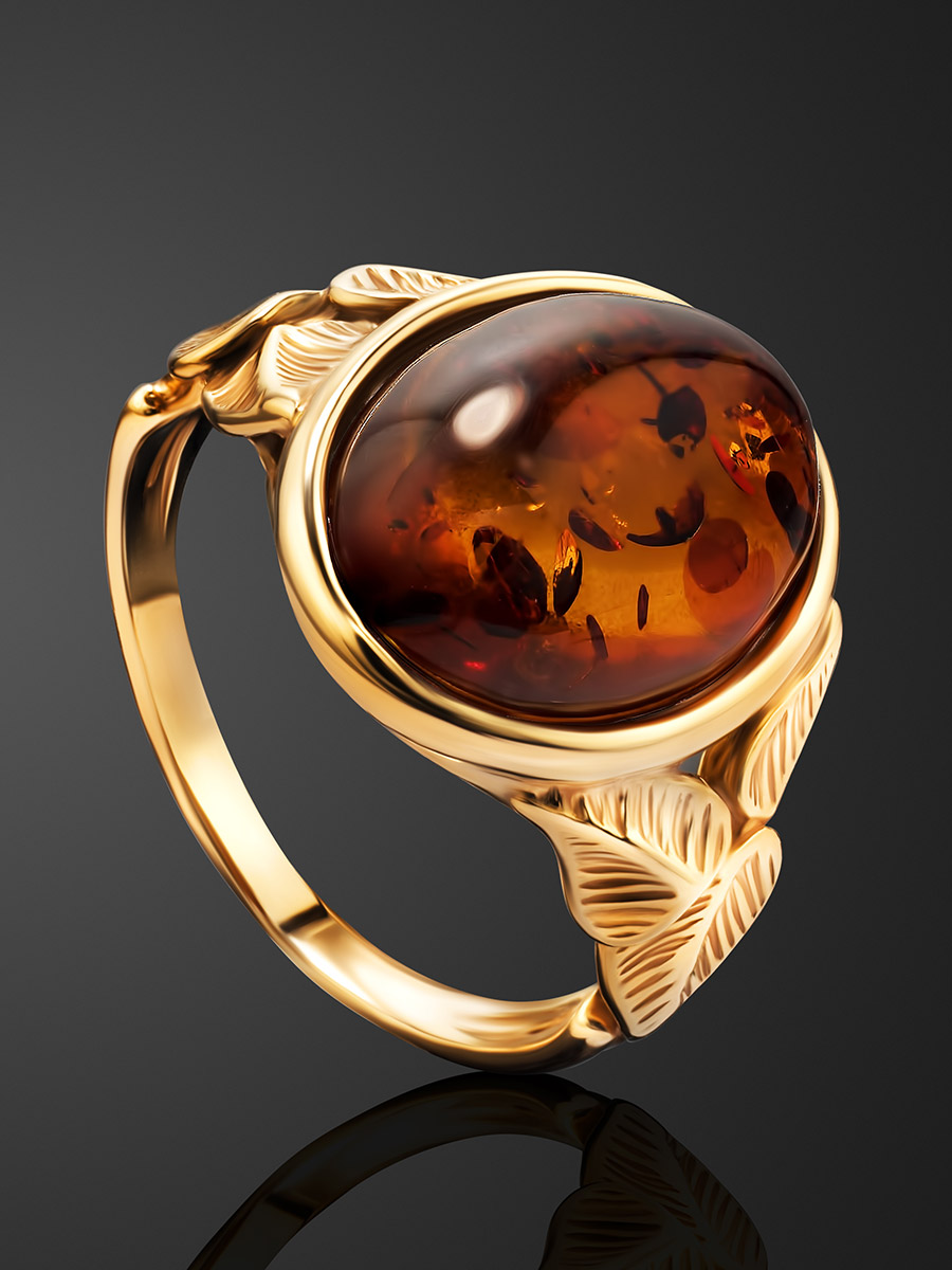 Яркое кольцо с янтарём коньячного цвета «Кармен»