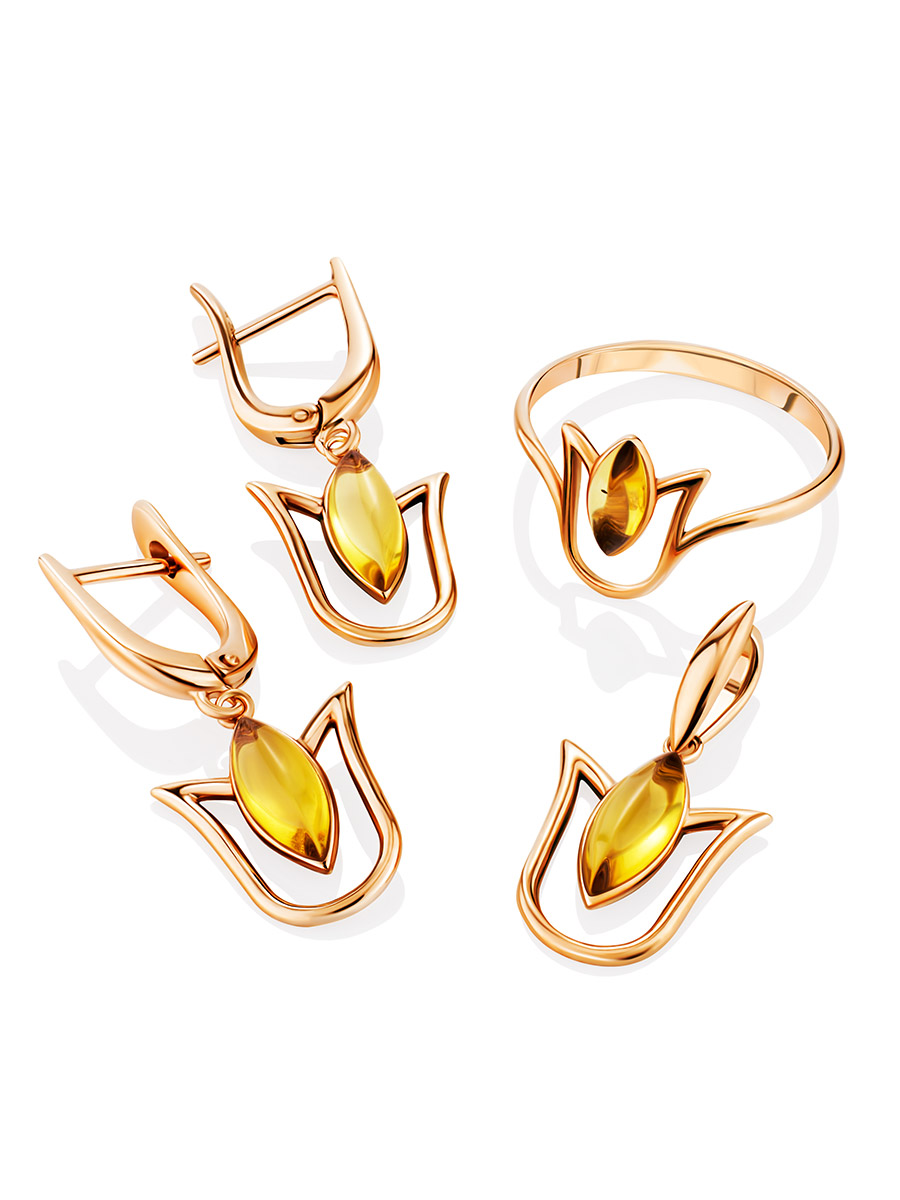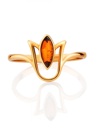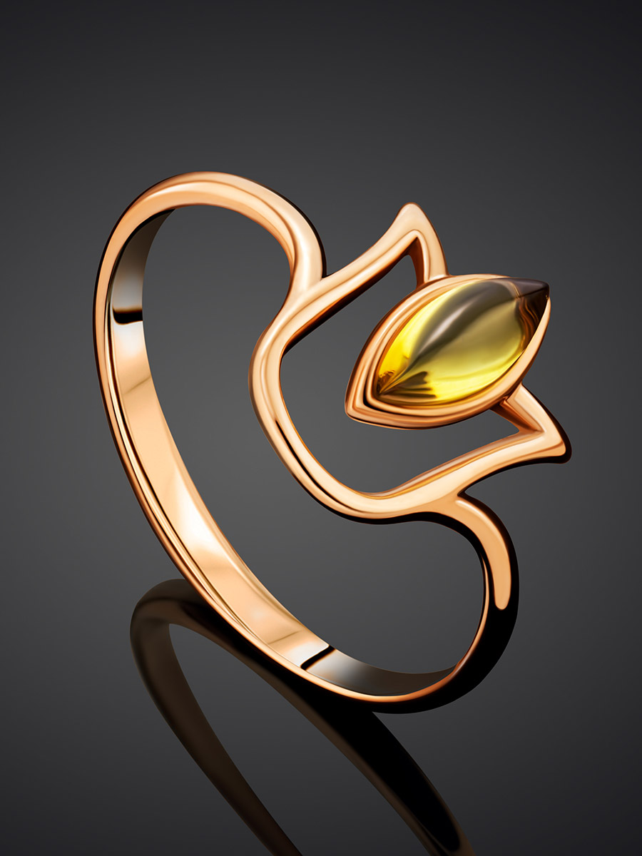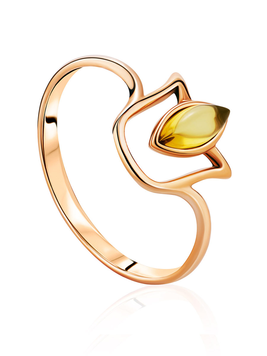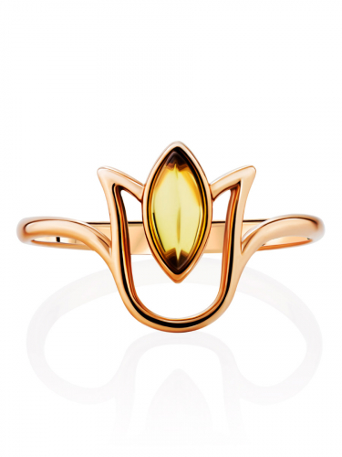 Яркое позолоченное кольцо с лимонным янтарём «Тюльпан»