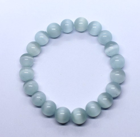 10-39 Браслет на резинке кошачий глаз серый 10 мм