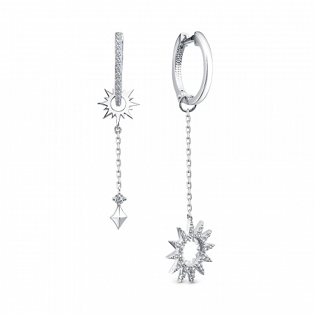 11-1080 Серьги с фианитом родированные серебро 925*