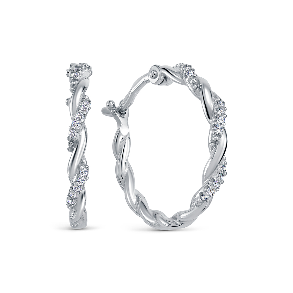11-1152 Серьги с фианитом родированные серебро 925*