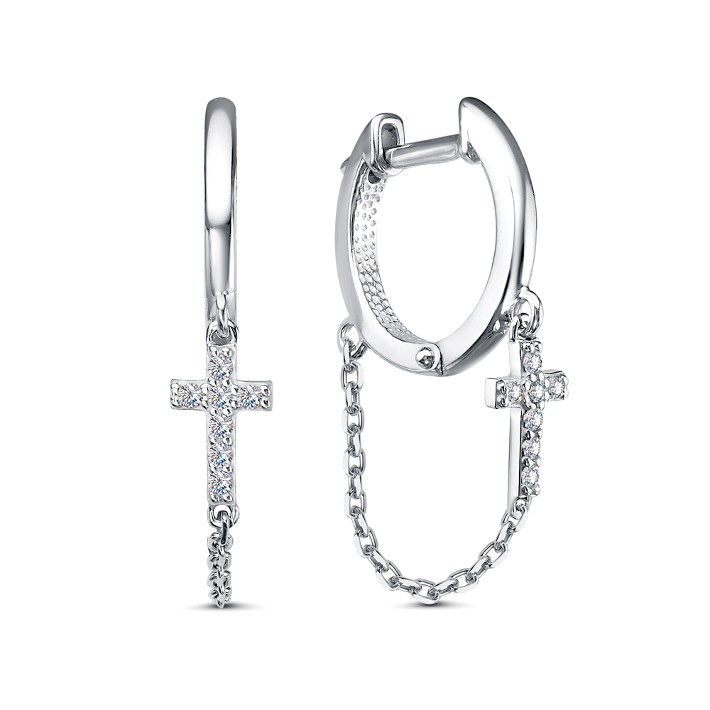11-1971 Серьги с фианитом родированные серебро 925*