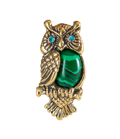 1520-4 Брошь Сова на ветке (малахит)