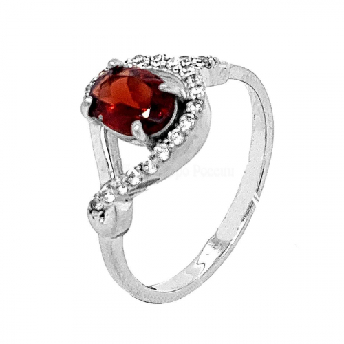 Кольцо из серебра с пл.кварцем цв.гранат и фианитами родированное 925 пробы ик-913284гр