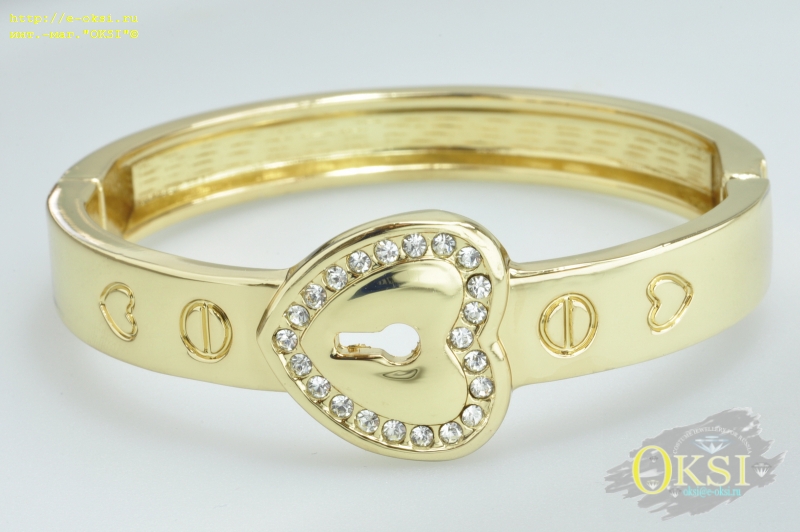 Очаровательный браслет с '' замочком'' Яркое украшение на каждый день или вечер. Благодаря особой конструкции комфортно и удобно сидит на запястье, на размеры 15 - 17 см. Качественное гальваническое покрытие золотого цвета. Качественное гальваническое покрытие золотого цвета, сверкающие фианиты. Высота браслета 2 см..