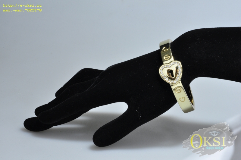 Очаровательный браслет с '' замочком'' Яркое украшение на каждый день или вечер. Благодаря особой конструкции комфортно и удобно сидит на руке, на размеры запястья 15 - 17 см. Качественное гальваническое покрытие золотого цвета. Качественное гальваническое покрытие золотого цвета, сверкающие фианиты. Высота браслета 2 см..
