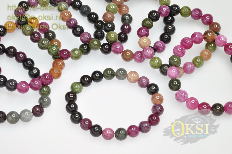 Браслет из разноцветного турмалина. Диаметр бусин 10мм Поверхность шлифованная, возможны небольшие неровности. Турмалин способен пробуждать творческие способности, вызывать жизнерадостное настроение.