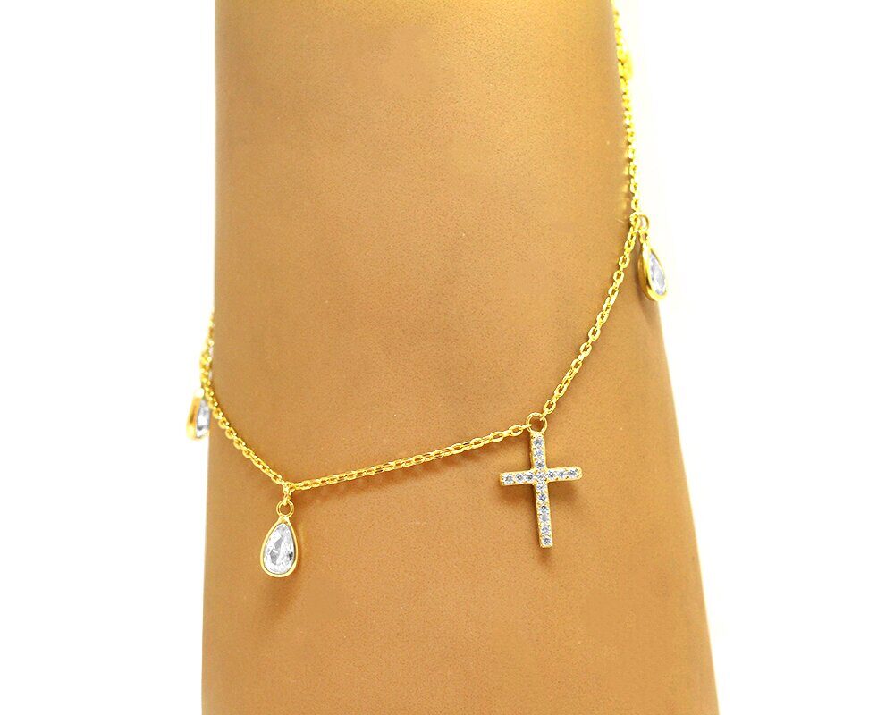 Браслет на ногу, арт.642855 Серебро Серебро 925, р. 22-26, 2,18 гр., куб.циркон.