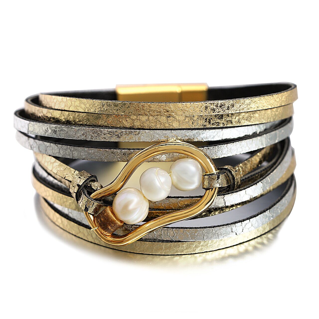Браслет, арт.656972 , р. 18, 0 гр., жемчуг , кожа , сталь