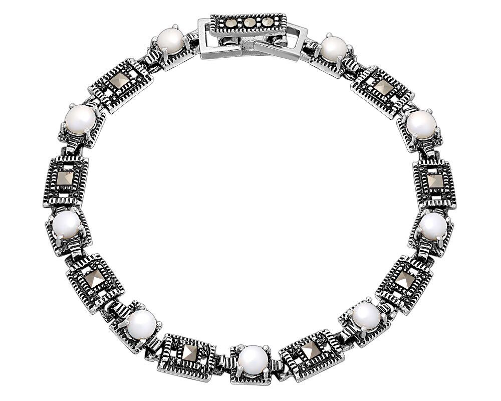 Браслет, арт.656339 Серебро Серебро 925, р. 17.5, 10,37 гр., жемчуг , марказит