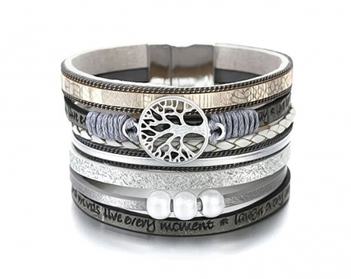 Браслет, арт.637301 Бижутерия 0, 0 гр., жемчуг swarovski , кожа , сталь