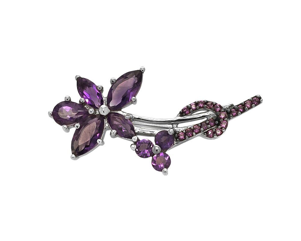 Брошь, арт.871 Серебро Серебро 925, 4,3 гр., аметист , наноаметист