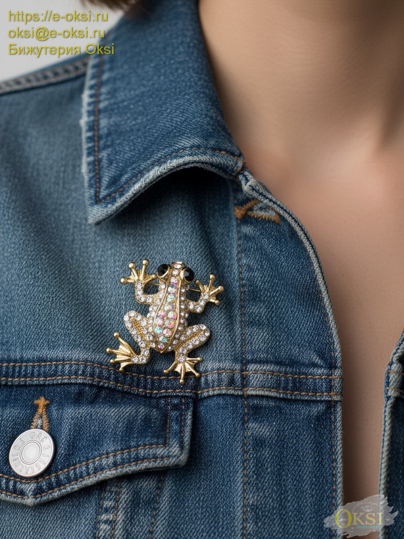 Брошь - талисман «Лягушка». Обладает силой исцеления, является талисманом на удачу, денежным амулетом и оберегом для путешественников. Размер 3,5 см. х 2,8 см. Качественное гальваническое покрытие золотого цвета, сверкающие кристаллы с ярким перламутровым блеском