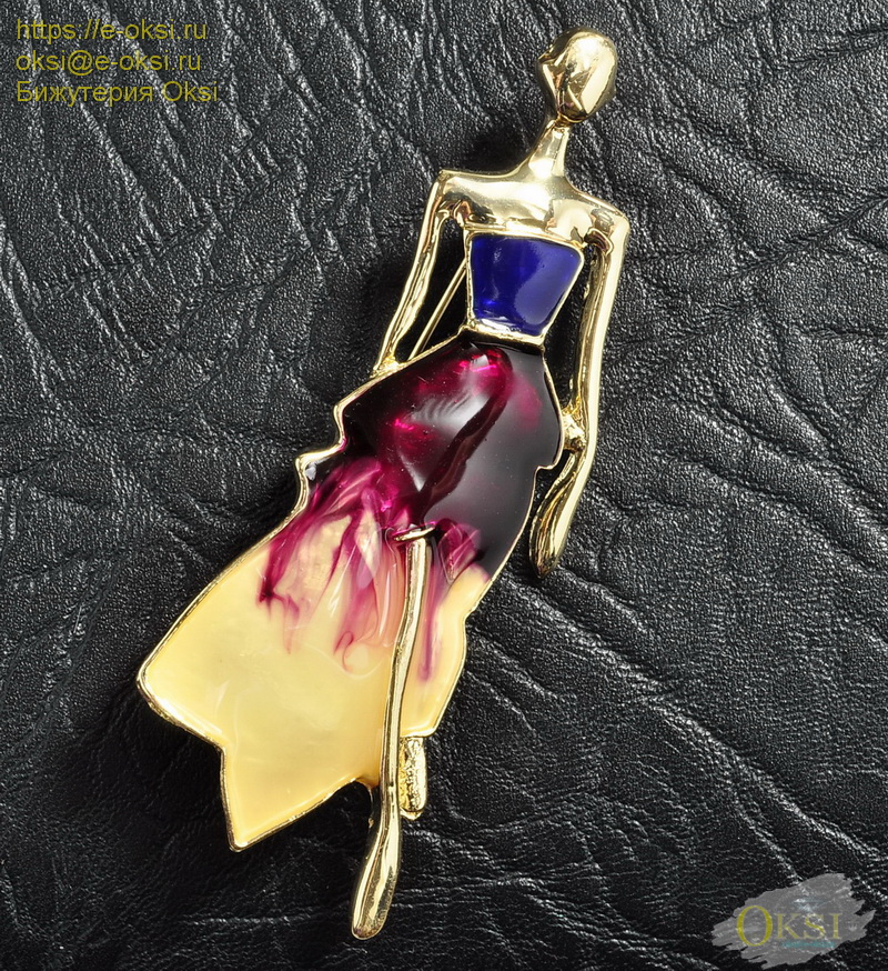 Стильная брошь '' Леди '' с покрытием ювелирной эмалью разного цвета.подойдёт к любому цвету одежды и аксессуаров, освежит и украсит любой скучный наряд.. Качественное гальваническое покрытие золотого цвета. Размер броши 7 см х 2,5 см. Эта брошь послужит красивым и недорогим презентом на любой праздник - подруге, сестре, коллеге по работе.