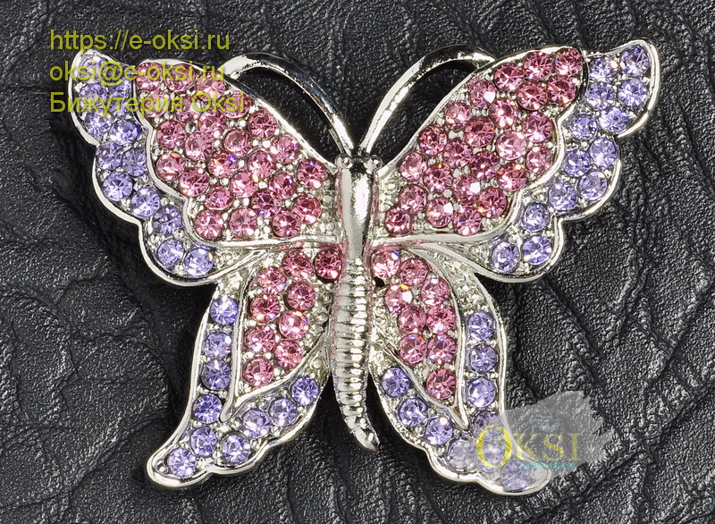 Эффектная брошь - талисман '' Бабочка '' украшена сверкающими кристаллами розового и сиреневого оттенка. Размер 4,3 см х 3 см.