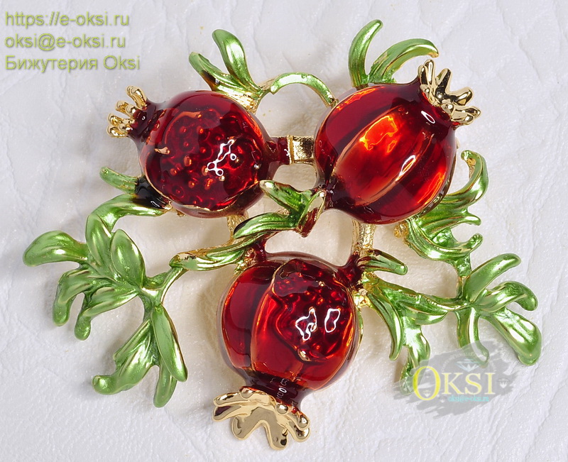 Яркая брошь '' Гранат '' украшена ювелирной эмалью.Качественное гальваническое покрытие золотого цвета. Размер 4,5 см х 4,5 см.