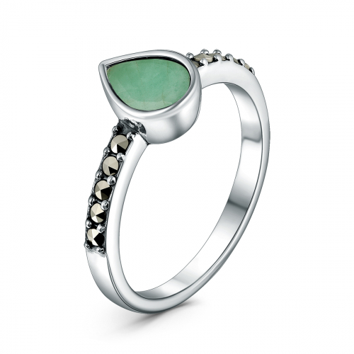 Кольцо из чернёного серебра с синтетическим агатом и марказитами 925 пробы GAR3140ак