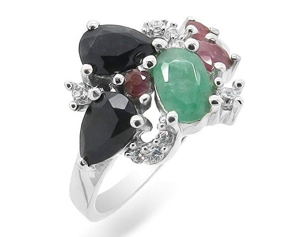 Кольцо из серебра изумруд, рубин, сапфир, Голландия