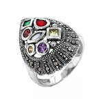 Кольцо из серебра с бриллианитом цв.шампань и фианитами родированное 925 пробы 1-4054р220