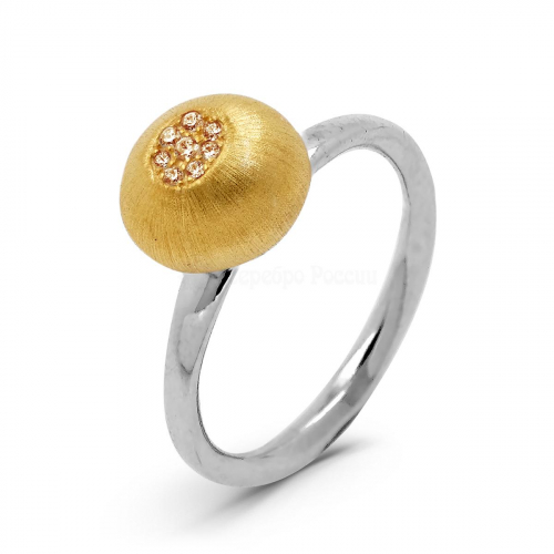Кольцо из серебра с куб.цирконием и позолотой родированное 925 пробы R09068рз205