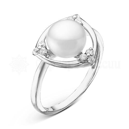 Кольцо из серебра с культ.жемчугом и фианитами родированное 925 пробы К1323р1005
