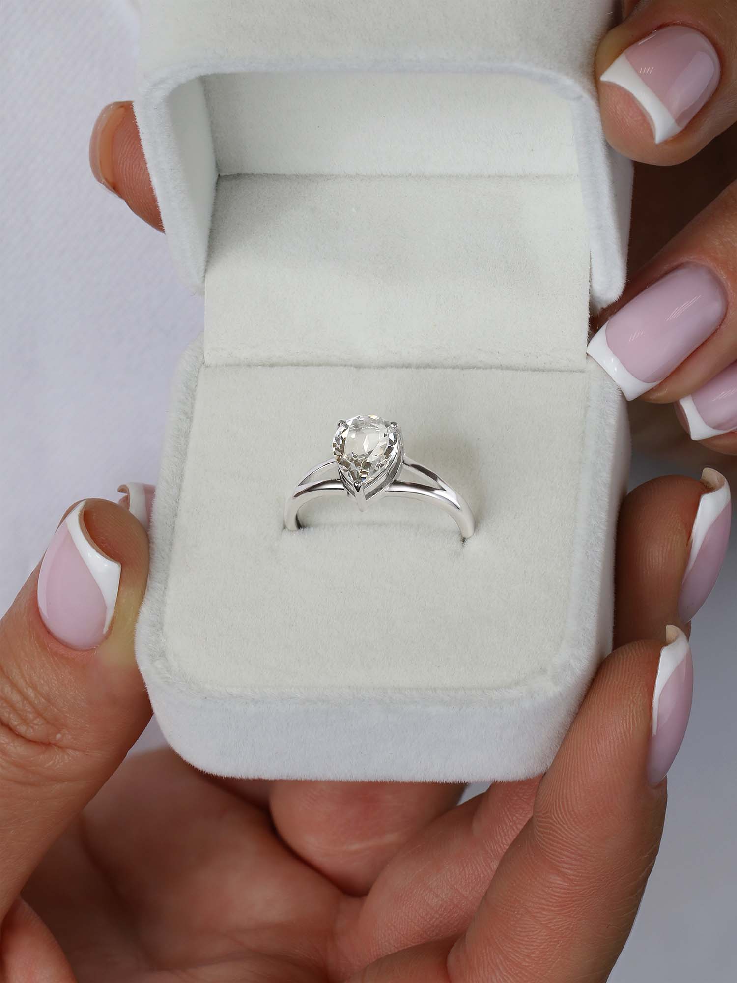 Кольцо из серебра с натуральным горным хрусталём родированное 925 пробы 1-501р429