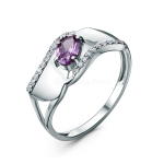 Кольцо из серебра с ситаллом цвета танзанит и кубическим цирконием родированное 925 пробы TMR-071
