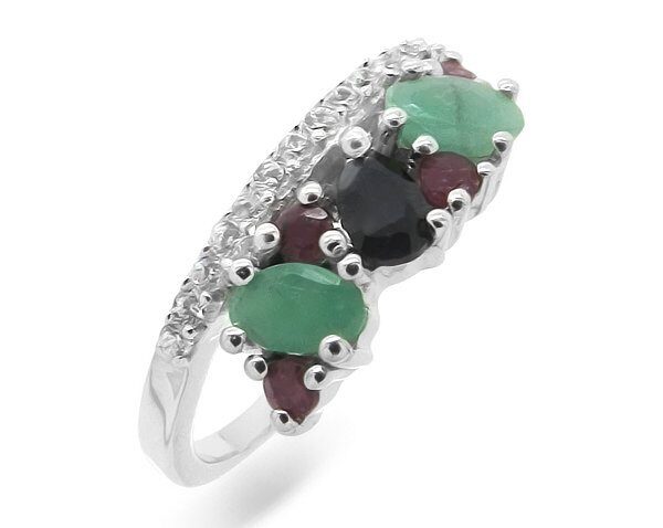 Кольцо из серебра изумруд, рубин, сапфир, Маура