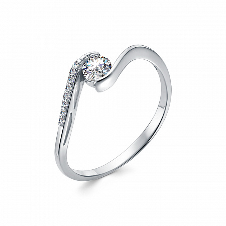 Кольцо с фианитом родированное серебро 925*