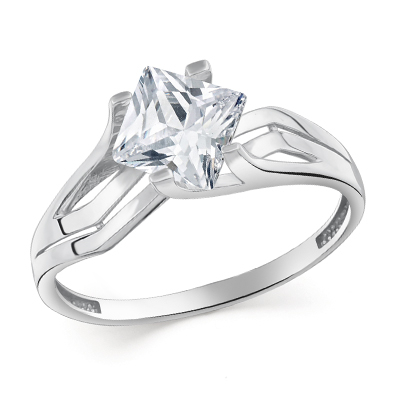 Кольцо с фианитом родированное серебро 925*