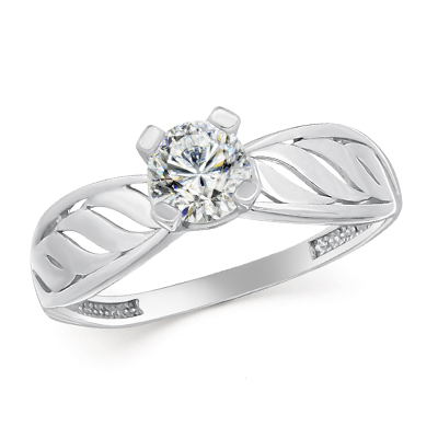 Кольцо с фианитом родированное серебро 925*