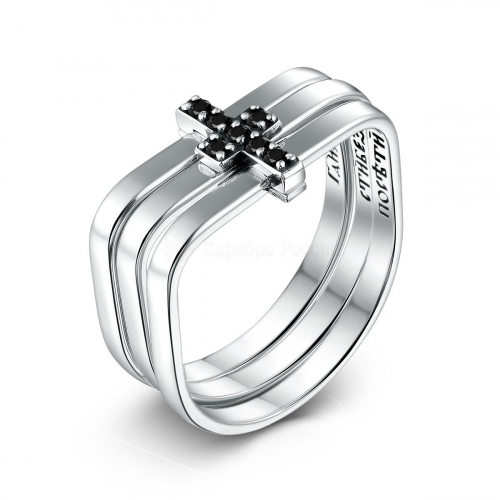 Кольцо тройное из чернёного серебра - Молитва ко Пресвятой Троице К-2377о216