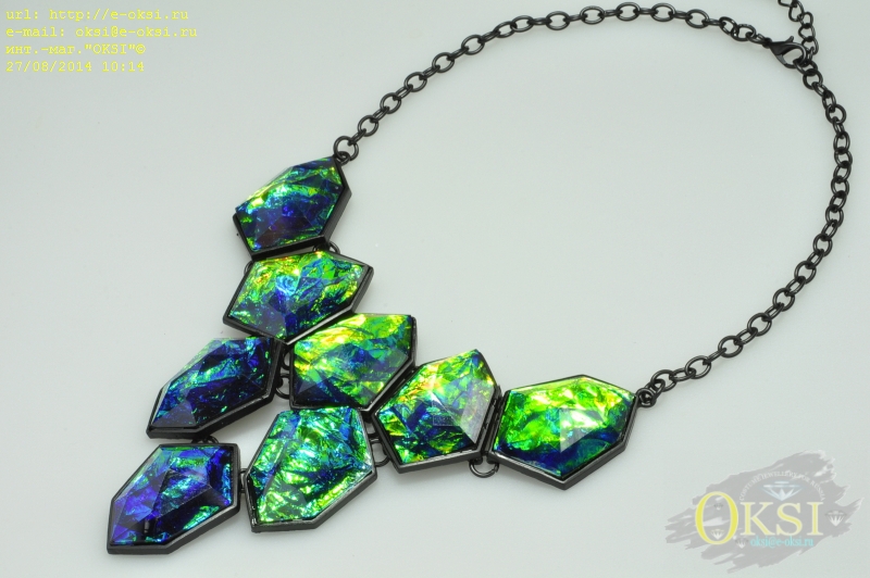 КОЛЬЕ-PD31194"Осколки льда". х удожественная см. ола цвет-" х амелеон"с красивым перламутровым блеском. Регулируемая длина от 45 до 60 см. Основа- прочное черненое родиевое покрытие.
