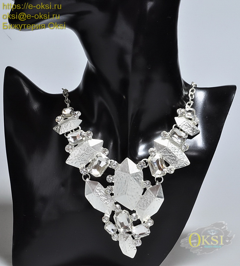 Роскошное колье серебряного цвета, украшено сверкающими, зеркальными кристаллами. Серебряный цвет в украшениях является базовым и подходит к любому оттенку одежды и аксессуаров. Длина колье 48 см +5 см цепочка. Качественное родиевое покрытие матового оттенка.