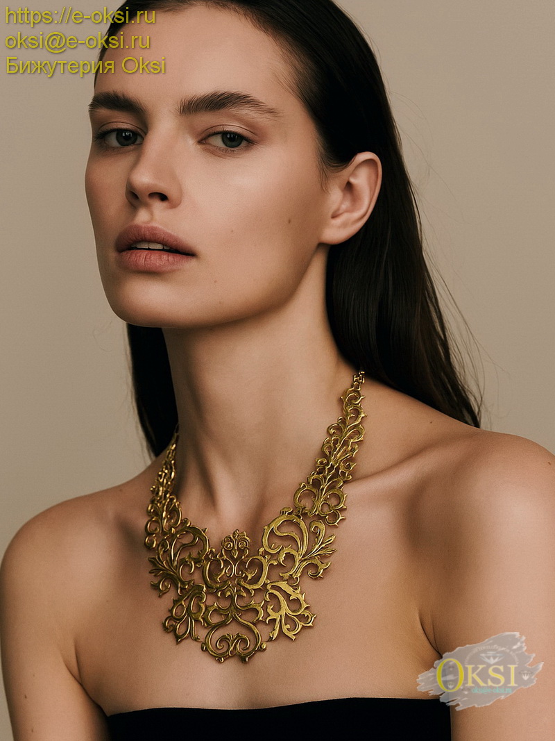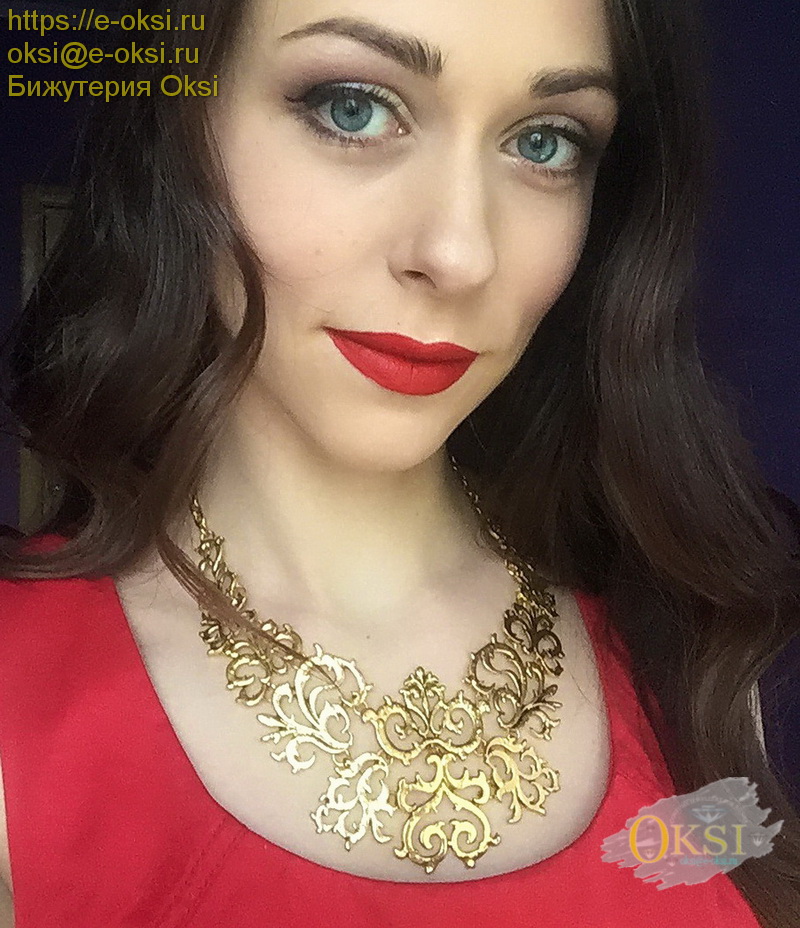 Стильное ажурное колье. Золотой, матированный цвет металла - модный тренд этого сезона ! Качественное гальваническое покрытие. Золотой цвет - символ немеркнущего солнечного света, роскоши и богатства. Это самый популярный и привлекательный цвет в украшениях, сочетающийся практически со всеми оттенками цветовой палитры в одежде и аксессуарах.Длина колье 45 см + 7 см удлиняющая цепочка
