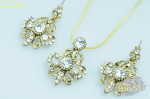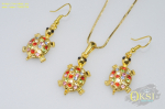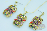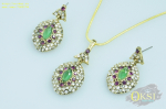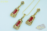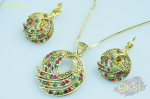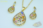 Элегантный комплект с синтетическими вставками - яркий акцент для серых будней и роскошных праздников ! Качественное гальваническое покрытие золотого цвета. Длина колье 45 см. Удачно подобранные и отлично сочетающиеся оттенки синтетических камней. Подойдет к одежде бирюзово - голубых , мятно -зеленых, и лимонно- оранжевых оттенков.Хорошо сочетается с аксессуарами золотого и серебряного цвета.